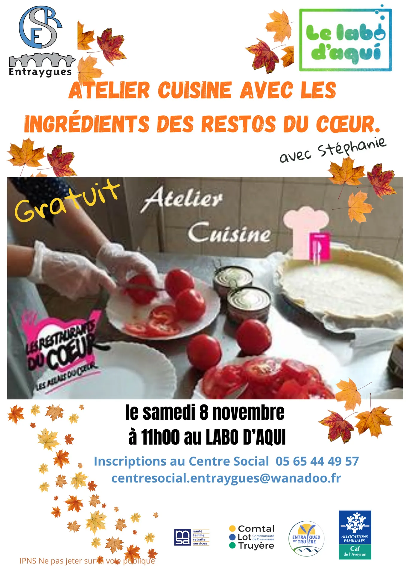 Atelier cuisine avec les ingrédients des restos du cœur et Stéphanie.