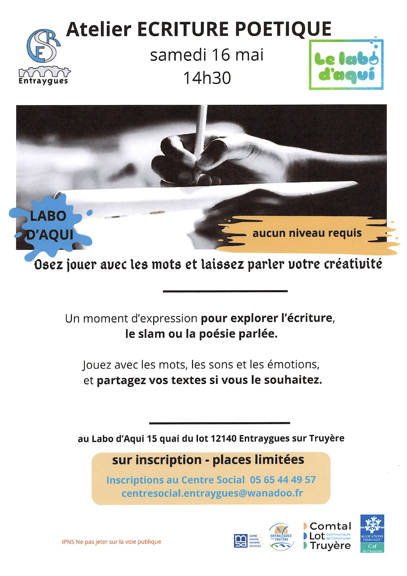 Osez jouer avec les mots et laisser parler votre créativité, un moment d’expression pour explorer l’écriture, le slam ou la poésie parlée. Jouez avec les mot, les sons et les émotions, et partagez vos textes si vous le souhaitez