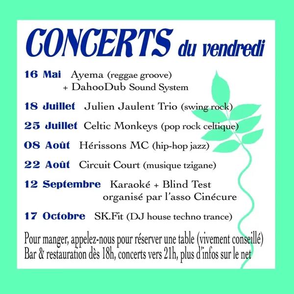 > Voir affiches ou réseaux web pour programmation musicale et menu