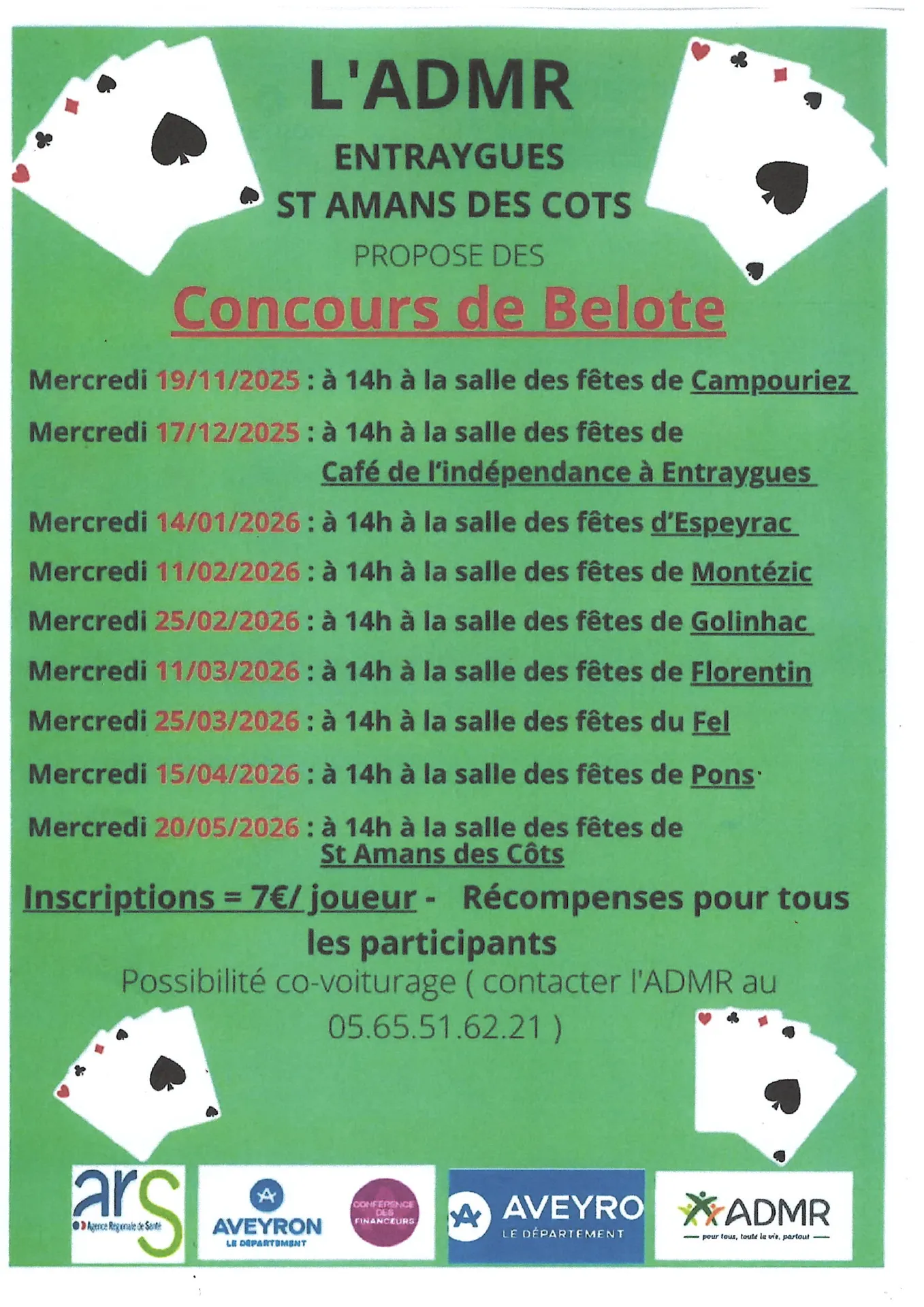 Si vous aimez jouer aux cartes venez passer un mercredi après-midi convivial dans les différents villages du territoire. Récompenses pour tous les participants.
