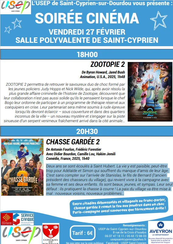 L’USEP de Saint-cyprien vous propose deux films le vendredi 27 février à la salle polyvalente de Saint-Cyprien.
