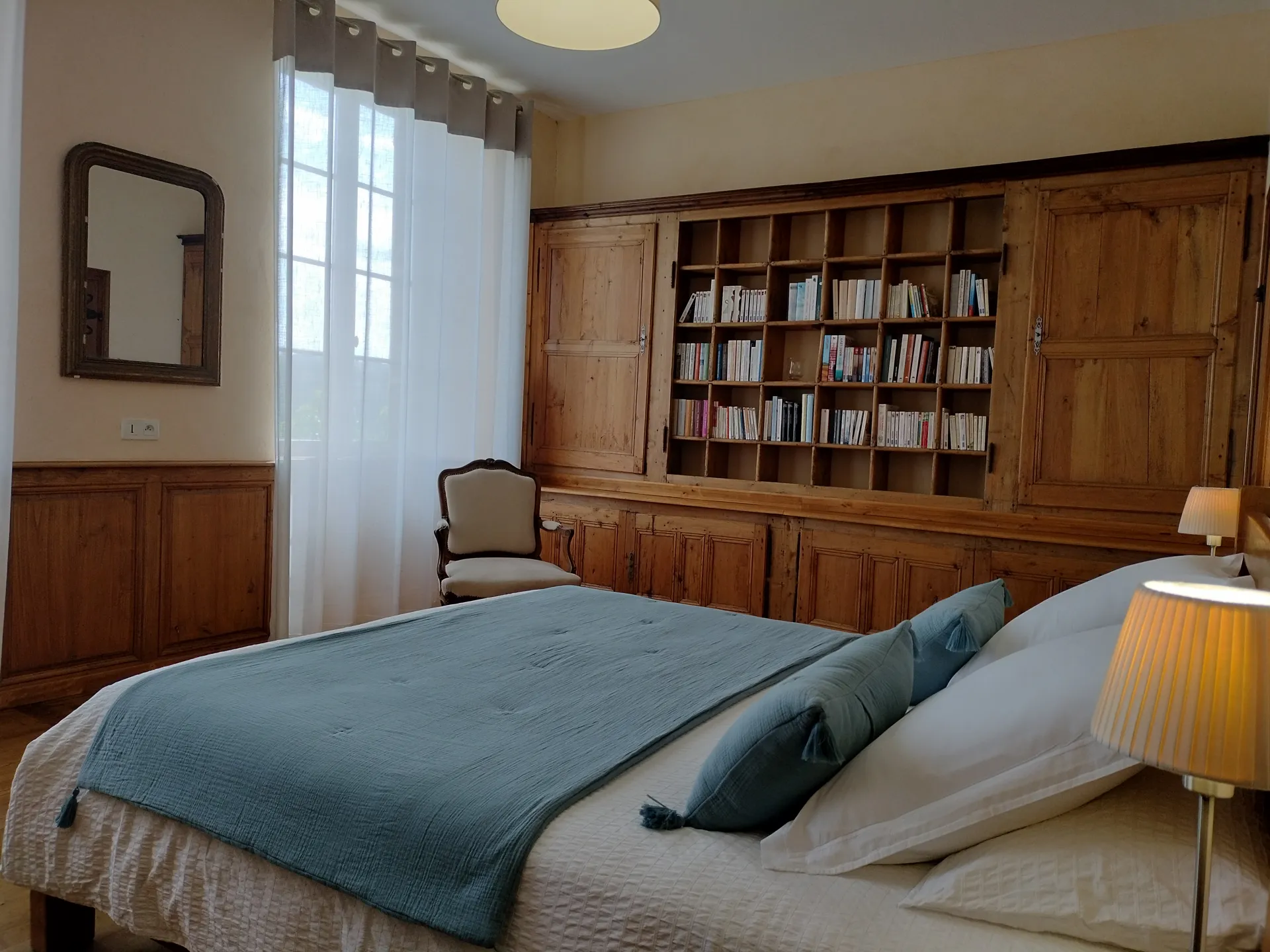 Gîte mitoyen à une résidence secondaire très peu occupée, 3 niveaux, à la campagne. 4 chambres ( 2×160, 4×90), 3 salles d’eau, séjour/cuisine (lave-linge, lave-vaisselle), 1 salon au rez de chaussée (2 canapés, fauteuil et poufs, télévision, jeux de société, cheminée), 1 salon au 2ème étage (canapé-lit), buanderie (sèche-linge), possibilité 2 lits d’appoint et 2 lits bébé, chauffage central.